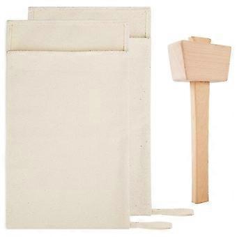 Pack Of 2 Bags And 1 Piece Ice Mallet Set-reusable Canvas Crushed Ice Bags With Wooden Mallet For H