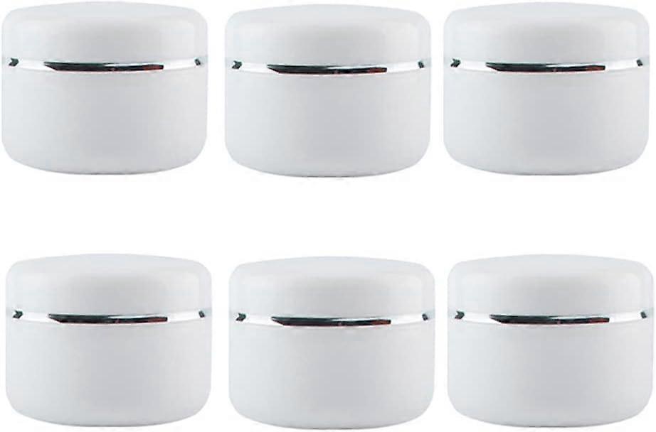 Pack of 6 100ml Empty White Plastic Round Jar Bottles with Liners and Screw Caps Refillable Cosmetic Jars