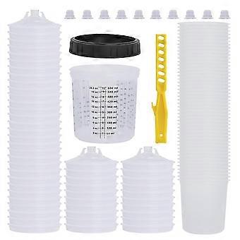 Paint Cup, 50 Cup Liners (20 Oz), 50 Lids with Filters, 10 Plugs, 1 Hard Cup, 1 Retaining Ring, 1 Stirring Stick