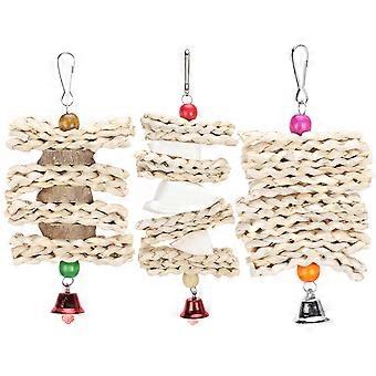 Parrots Chewing Toy Corn Husk Pepper Wood Cuttlefish Bone String Cage Hanging Bird Biting Toy(No. 1 No. 2 No. 3 )