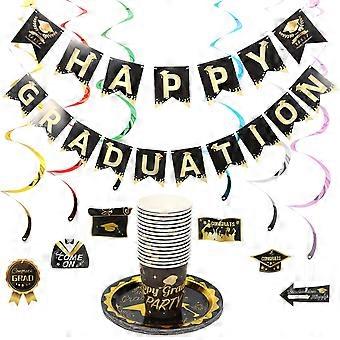 Party Streamers Graduation Plates Cup Fork Supplies Round Paper Plate Set Students Guests 1Set