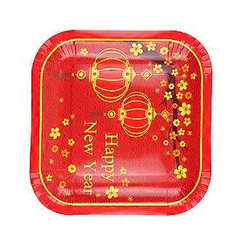 Party Themed Decorated Plates Red 23x23cm Chinese Style Tableware 8Pcs