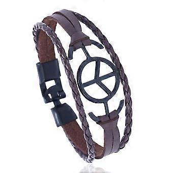 Peace pattern hand-woven cowhide bracelet - Peace pattern creative national style bracelet - Peace pattern men's leather bracelet