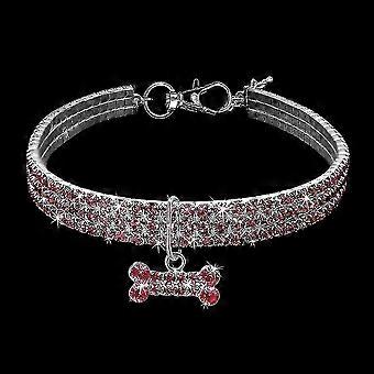 Pet Bone Collar, 3 Rows Rhinestones Crystal Elastic Necklace