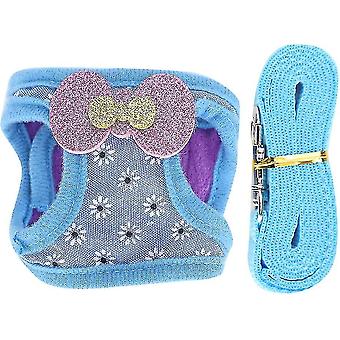 Pet Chest Strap Set, Pet Vest Harness Rabbit Hamster Blue Snowflake Pattern Small Animal Leash Rope