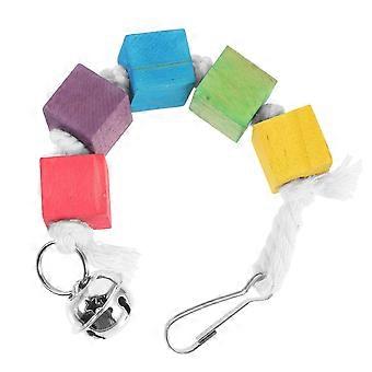 Pet Parrot Chewing Toy Wooden Block Hanging with Bell 3Pcs Set