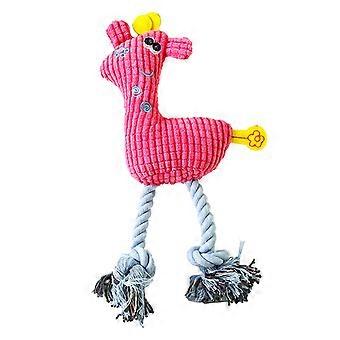 Pet Plush Chew Toy Teeth Cleaning Bite Resistant Deer Shape Squeaky Cat Dog Chewing Toy with Cotton Rope Rose Red