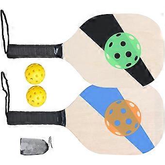 Pickleball Wood Paddle Set with Bag Beginner Racket Durable 40cm Long 19cm Wide for Men Women Kids 2 Paddles 2 Pickle Balls Portable
