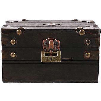 Pirate Treasure Chest Wooden Trinket Box with Lock for Storage 4Pcs
