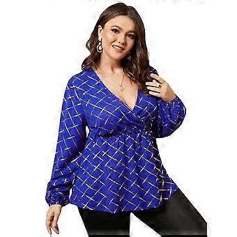 Plus Size V-neck Plaid Crossed Front Design Blouse