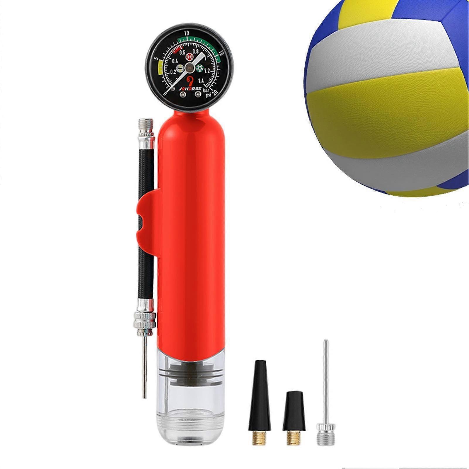 Ball Pump Inflator with Hose Extension - Versatile Sports Pump for Football, Basketball, Soccer, Volleyball, Yoga Ball, Red
