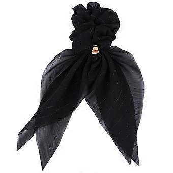 Ponytail Holders Elastic Bowknot Hair Band Buckle Design Black 1Set