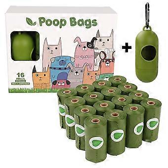 Poop Bags, 16 Rolls Dog Poop Bags, Dog Poop Bags with 1 Dispenser, Large Waterproof Pet Poop Bags, Green Poop Bags.
