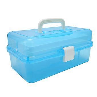Portable 3-Layer Transparent Blue Storage Box for Art Crafts and Cosmetics