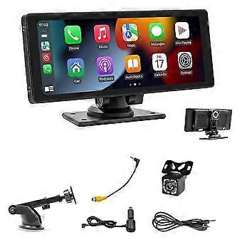 Portable Wireless Carplay Car Stereo with Dash Cam - 10.26In HD IPS Screen, Android Auto, 1080P Back