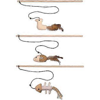 Premium Cat Toy | Natural Robust Toy Rod With Mouse | Stuffed Animal Set Of 3 For Cat Activity | Scratch Toy