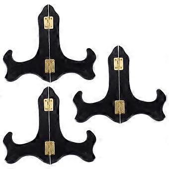 Premium Plate Holder Wooden Easel for Storage Use 3Pcs Black Display Stand