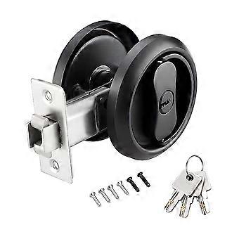Privacy Pocket Door Lock With Key, Black Entry Pocket Door Hardware Latch, Round Pocket Door Lock W