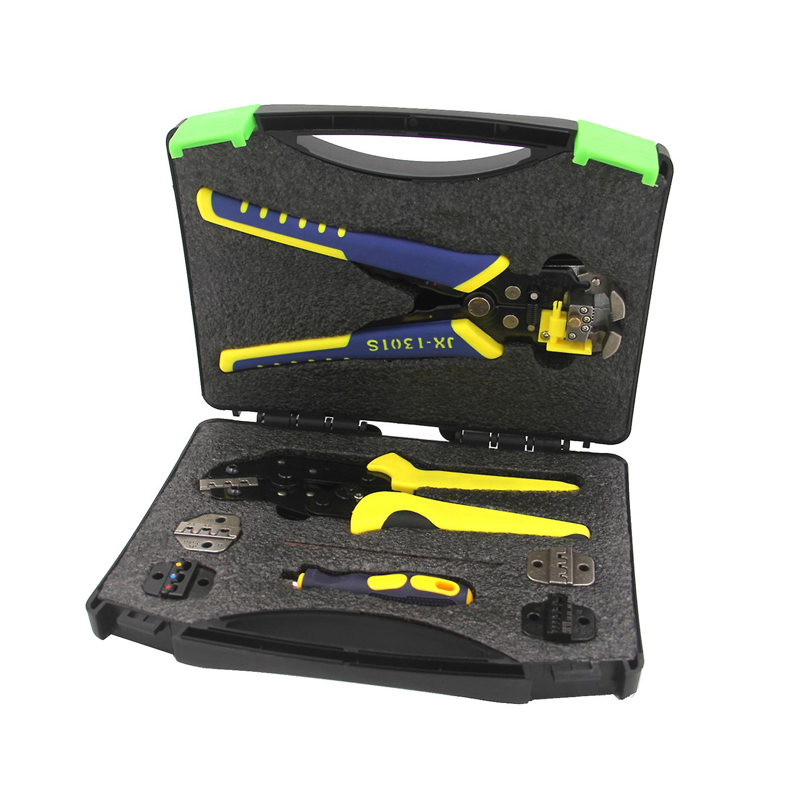 With 5 interchangeable terminals with different crimping ranges.