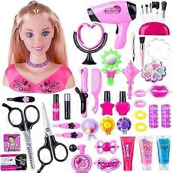 Hairdressing and Makeup Head for Kids Pretend Playset, 45Pcs Styling Head Doll Hairdressing Toy with Hair Dryer