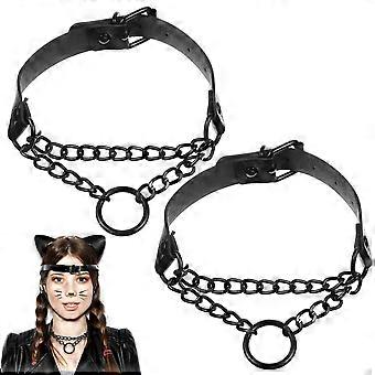 PU Collar Chokers Punk Style Necklaces for Decor 2Pcs Set