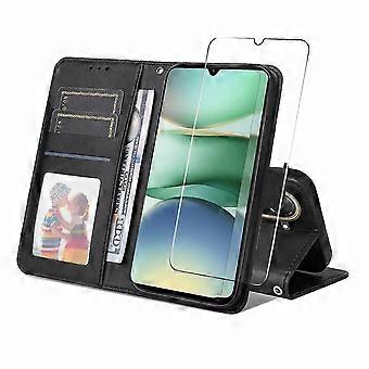 PU Leather Wallet Case with Tempered Glass for 173.3mm Phone Stand Cover