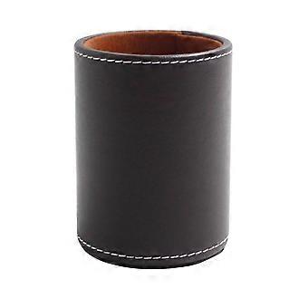 PU Pen Holder for Desk 2Pcs Round Shape Brown Black Storage Box