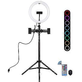 PULUZ 10.2 inch 26cm RGBW Light + 1.65m Tripod Mount + Dual Phone Bracket Curved Surface USB RGBW Dimmable LED Ring Vlogging Video