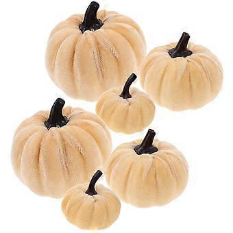 Pumpkin Prop Artificial Pumpkin Halloween Party Decorative Beige Cloth Foam for 6Pcs