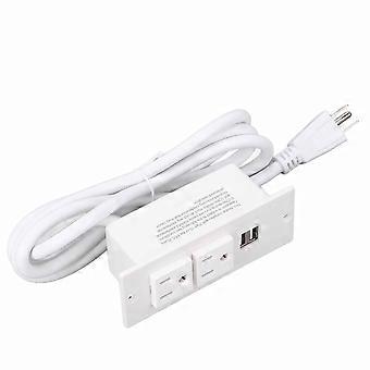 Recessed Power Strip 1500W 2 AC Outlets 2 USB Ports Furniture Power Socket with 1.5m Cord 12A