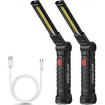 Rechargeable Work Light Workshop Lighting Cob Flashlight With Magnetic Base 5-mode White / Red Camping Garage Light, Camping Light, Emergency Light, E