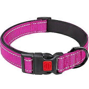 Reflective Dog Collar with Buckle Adjustable Safety Nylon Collars for Small Medium Large Dogs, Pink M