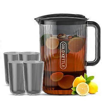 Refrigerator Door Water Pitcher with Handle, Serving and Storage Container for Hot or Cold Beverages, 74 oz Unbreakable Iced Tea Pitcher with 4 Cups