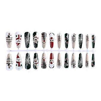 Removable Fake Nail Patch with Nail Glue Featuring a Christmas Snowman Design for Festive Nail Art