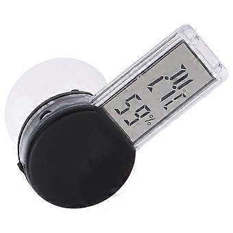 Reptile Temperature and Humidity Meter Sucker Design Digital Thermometer Black for Reptile Box Indoor Environment Monitoring 6.5x3x1cm 1Pcs