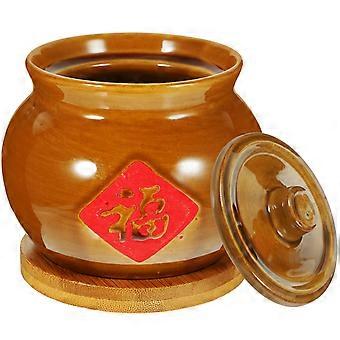 Retro Ceramic Stew Pot for Soup Serving 2Sets with Lids and Bamboo Mats