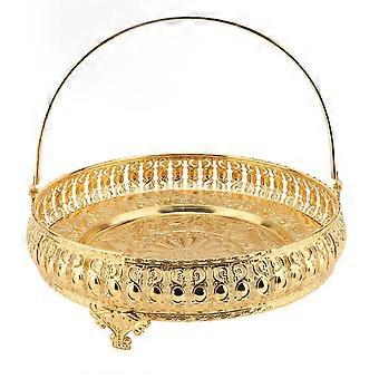 Retro Round Fruit Tray Exquisite Decorative Large Capacity Alloy Dessert Plate with Handle for Party