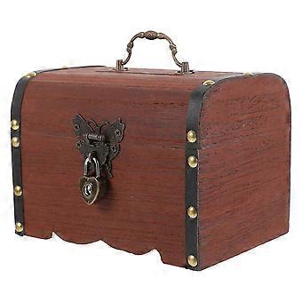 Retro Wooden Treasure Box Chest with Lock 3Pcs for Storage Use