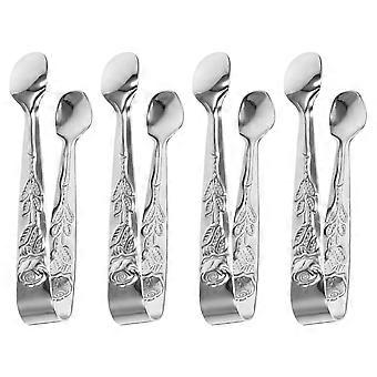 Reusable Stainless Ice Tong 4Pcs Food Serving Tool Sturdy Stainless Steel Ice Handling Tool Classic Mini Rose Pattern Design For Barbecue Use