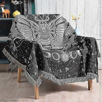 Reversible Cotton Bohemian Tapestry Throw Blanket for Hippie Room Decor Double Sided (Month Moth Black 50x60)