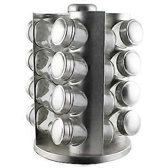 Revolving Design Stainless Steel Seasoning Jar Rack For Kitchen Use With 1 Set Of 16Pcs Bottles