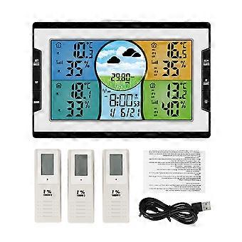 RF 4 Channels Digital Clock Temperature & Humidity Indicator with Warning Alarm Meteorological Station Weather Forecast Clock