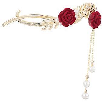 Rose Flower Hair Clip with Dangle Tassel for Bun Holder and Barrette