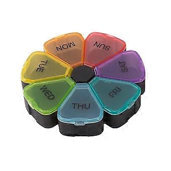 Round Portable Pill Box Medicine Planner Round Shaped Small Case Weekly Pill Organizer 7-Sided Pill