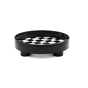 Round Storage Organizer Tray Checkerboard Design Plate Container Tray for Fruit Perfume Jewelry Black, Large