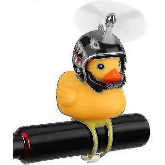 Rubber Duck Bike Horn With LED Lights, Cute Propeller Handlebar Bicycle Accessories, With Hard Hat Little Yellow Duck (black)