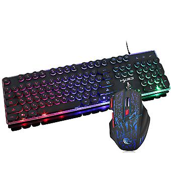 Russian Wired Gaming Keyboard & Mouse Set 104 Keys Rainbow Backlit Punk Keycaps Mechanical Feel Keyboard 5500dpi 7 Buttons Computer Mouse