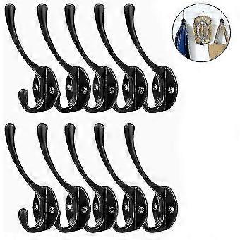 Rustic Double Hooks - 10 Pack | Heavy Duty Wall Mounted Coat Hooks
