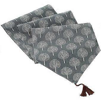 Rustic Table Runner Washable Floral Tree Pattern with Tassel, for Dresser Scarf Dining Coffee Home Tabletop Decoration