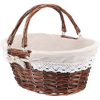 Rustic Woven Picnic Basket with Handles – Versatile Storage for Fruits, Flowers, Outdoor Gatherings, and Home Organization